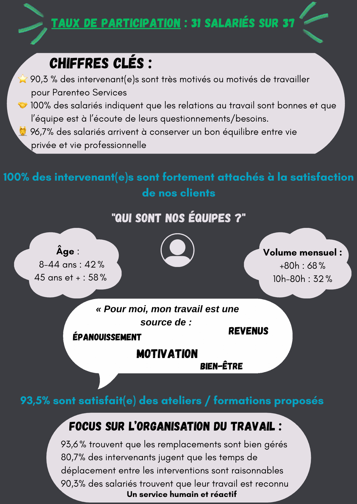 Chaque année, l'enquête bien-être est un moment important. Elle permet d'appréhender le niveau de bien-être au travail de ses salariés et de les impliquer dans la vie de l'entreprise afin de construire une relation professionnelle saine et durable.